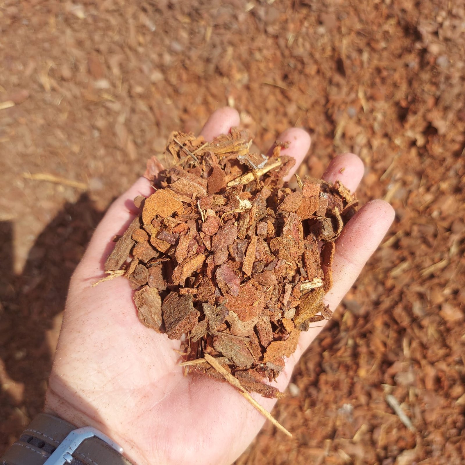 - Tamaño Variado: Las piezas de corteza de pino pueden tener tamaños variables, generalmente entre 3 y 6 cm, lo que le otorga una apariencia natural y rústica, ademas de Mulch o fina entre 1 y 2 cm.